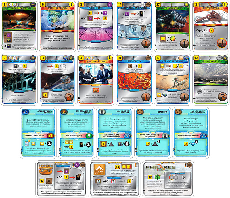 - «Судебный иск» — если в этом поколении игрок нанес ущерб ресурсам или уменьшил производство, он получит 3 мегакредита. Но за каждый поступок — своя плата.