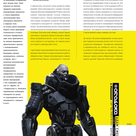 Окунитесь в 2077 год, во все дистопические метрополии, где насилие, угнетение и имплантаты киберпрофилей не просто распространились вокруг – они теперь необходимы инструменты для достижения успеха. Приобщитесь к знаниям об экономическом упадке Соединенных Штатов, который повлек за собой зависимость людей от коварных корпораций и породил Свободный штат Калифорния. Изучите различные районы, банды и историю города. Узнайте все, что нужно знать о технологиях ближайшего будущего, изучите кибернетику, оружие и транспортные средства Cyberpunk 2077. Эта книга – большой сборник знаний о вселенной. создателей серии видеоигр Ведьмак.