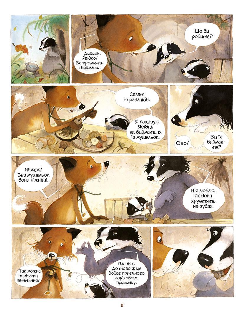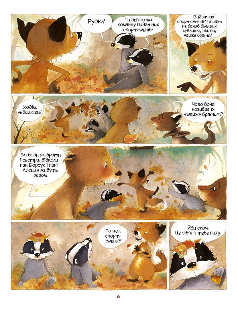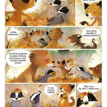 Лисичка Рудя и ее мама Маргарита, а также барсуки Кусь, Гризь и маленькая Ягодка и их папа Эдмон живут одной семьей после того, как лисью нору разрушили охотники. И хотя лисы и барсуки очень разные — лисы любят беспорядки, они быстры и суетливы, а барсуки медленны и рассудительны и больше всего ценят порядок, — это не мешает им относиться друг с другом.