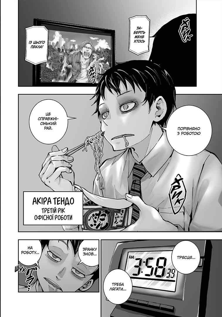 В темной заброшенной квартирке 24-летний работник каторжной компании Акира Тэндо безжизненными глазами смотрит фильм о зомби. За три года, которые он работает в компании, яростно эксплуатирующей работников, Акира сломался. Не добавляет оптимизма и то, что он никак не находит смелости признаться в чувствах к коллеге — Оотори.