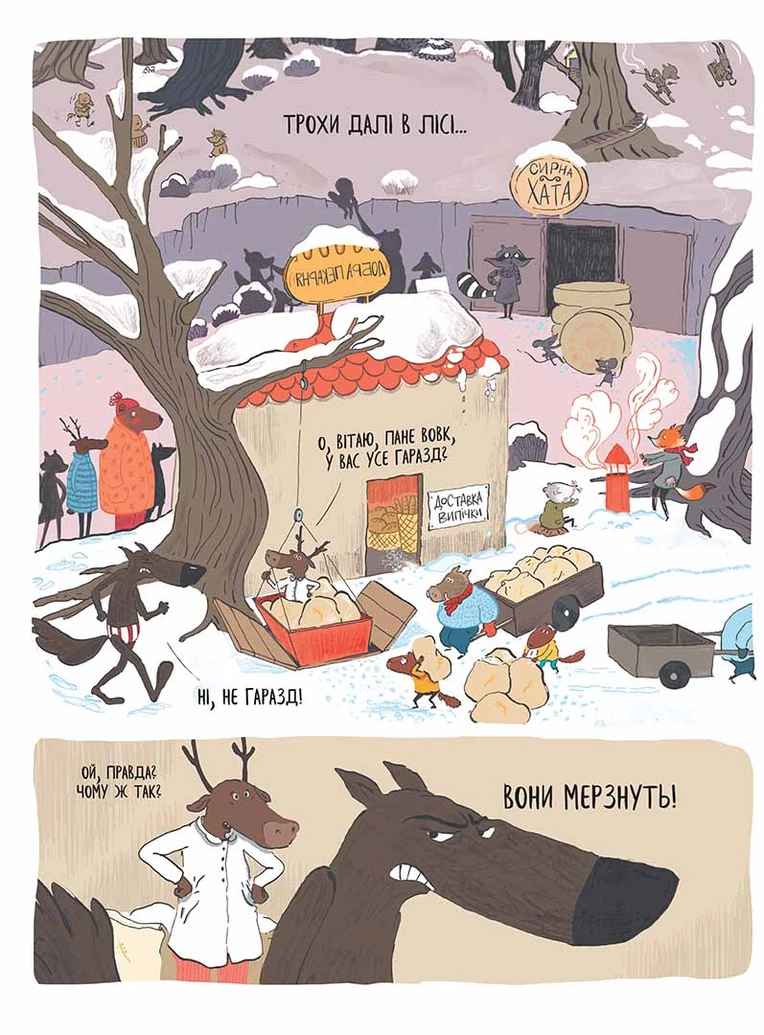 Пришла зима, снежная, холодная… Звери прячутся в дупла и норы, где тепло и есть запасы продовольствия. А волк в трусах, кажется, снова превращается в злую волчицу. Но почему, разве его дупца мерзнет в таком теплом белье?