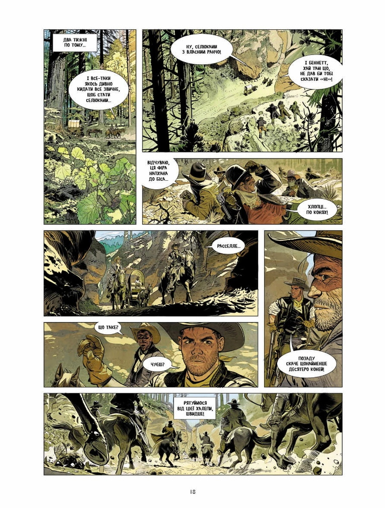 Галерея характеров, созданная тандемом Жерома Феликса и Поля Гастина – множество выразительных лиц, среди которых не найдешь ни одного бескорыстного героя, кроме разве добросердого Беннета. Но на Диком Западе иначе не место. Жесткие черты, жестокие люди, закаляемые рядами неудач и готовые идти до конца. Каждый из них идет к своей цели. Чтобы не случилось, до последней капли крови.