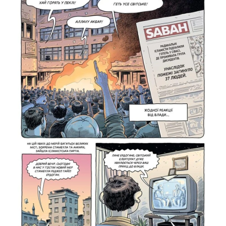 Обманчиво легкий рассказ, рассказанный через рисунок быт рядового гражданина, показывает глубокий политический кризис, выписывает портрет страны, в которой царит рознь, а власть захватывают с помощью оружия.