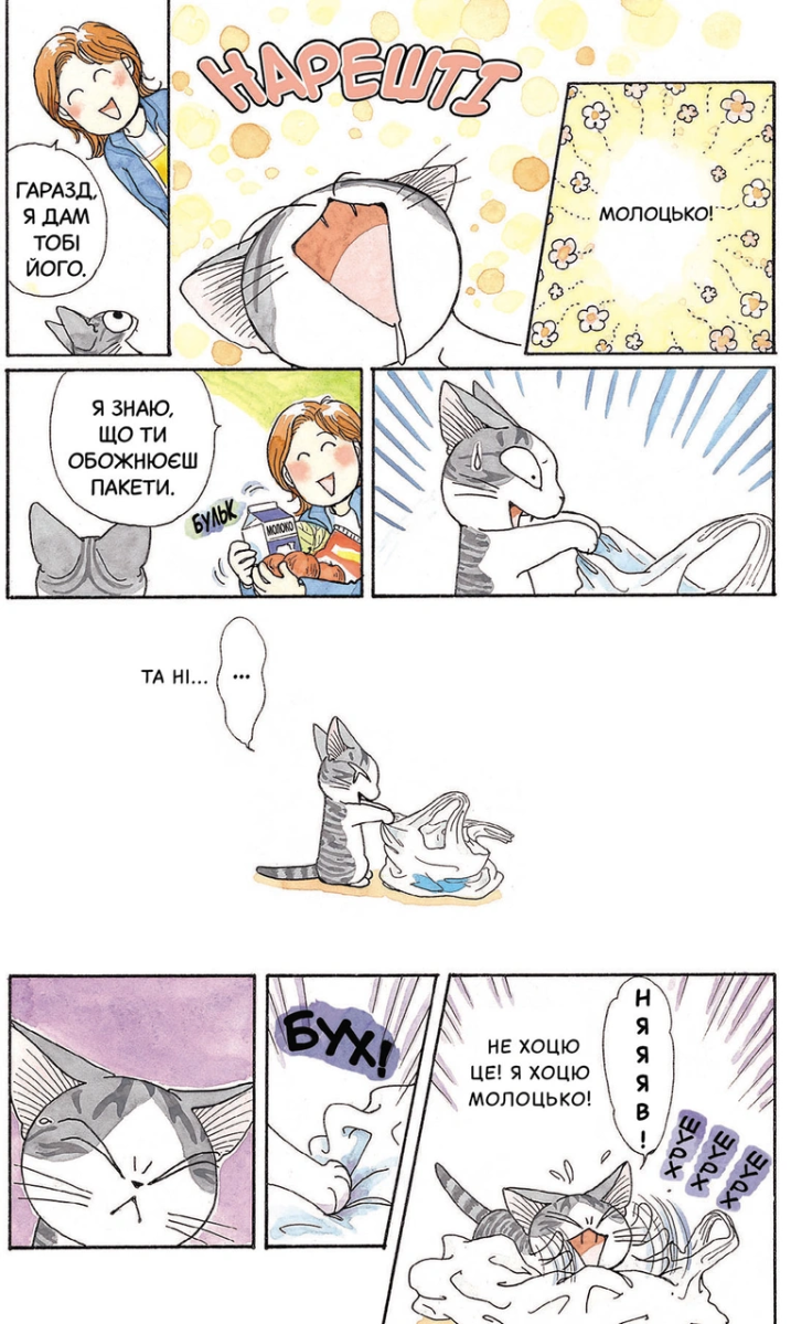 Маленькая Чи полностью освоилась в новом доме: можно отдыхать, носить, устраивая невероятный беспорядок в папином кабинете, и даже отведать вкусного молочка. Все в восторге от Чи — ласкают, играют с ней, угощают разнообразными вкусностями. Вроде бы ничто не может нарушить эту беззаботную жизнь. Но однажды в доме откуда-то появляется огромный черный котяра, похожий на медведя… Что же делать нашей Чи? Как спасти Йохея и родителей от непрошеного гостя?
