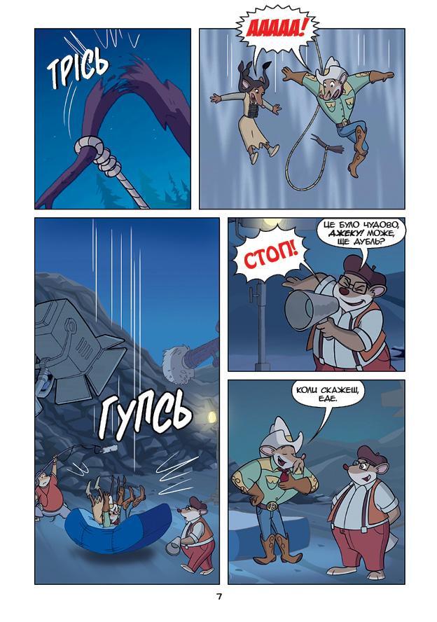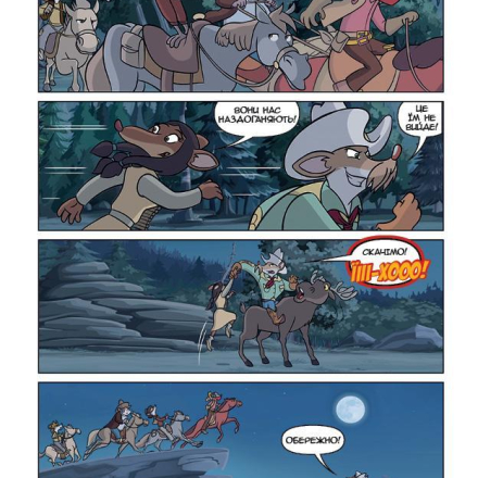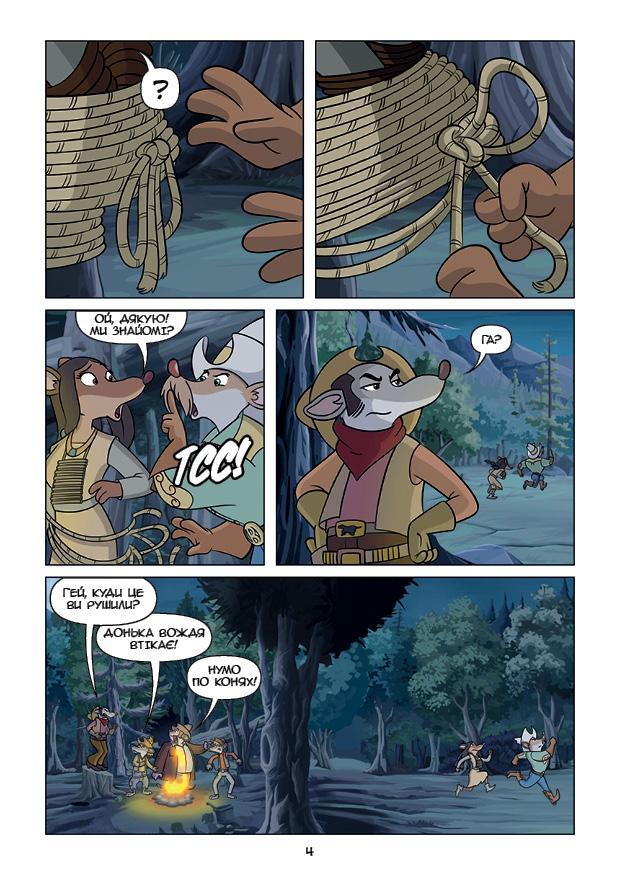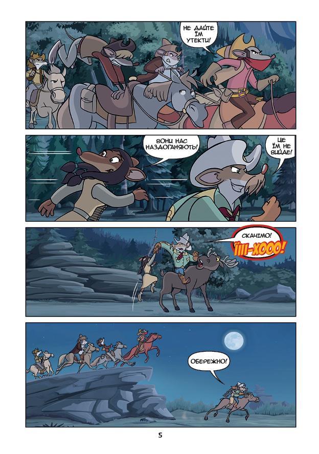 Друг Джеронімо Стілтона, відомий режисер Ед Грейфер, запрошує його відвідати знімальний майданчик фільму «Кусень Сиру-4». Джеронімо не сумнівається, що з цього вийде гарний репортаж для мультимедійного випуску його газети «Гризун», і разом зі сестрою Теєю, небожем Бенджаміном та його подружкою Пандорою вирушає дивитися зйомки фільму про Дикий Захід.