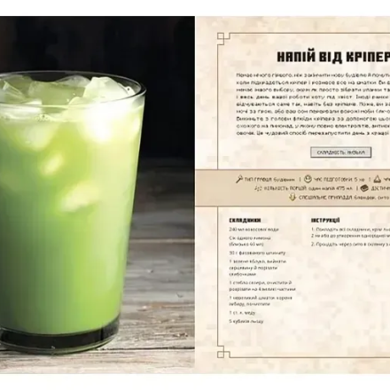 Ця кулінарна книга містить закуски, перекуси, основні страви, десерти та напої, які ідеально підходять для будь-якого рівня майстерності (і типу гравця) — це саме те, що потрібно, аби доповнити вашу кухню духом Minecraft. То на що ж ви чекаєте? Час збирати, готувати та їсти!