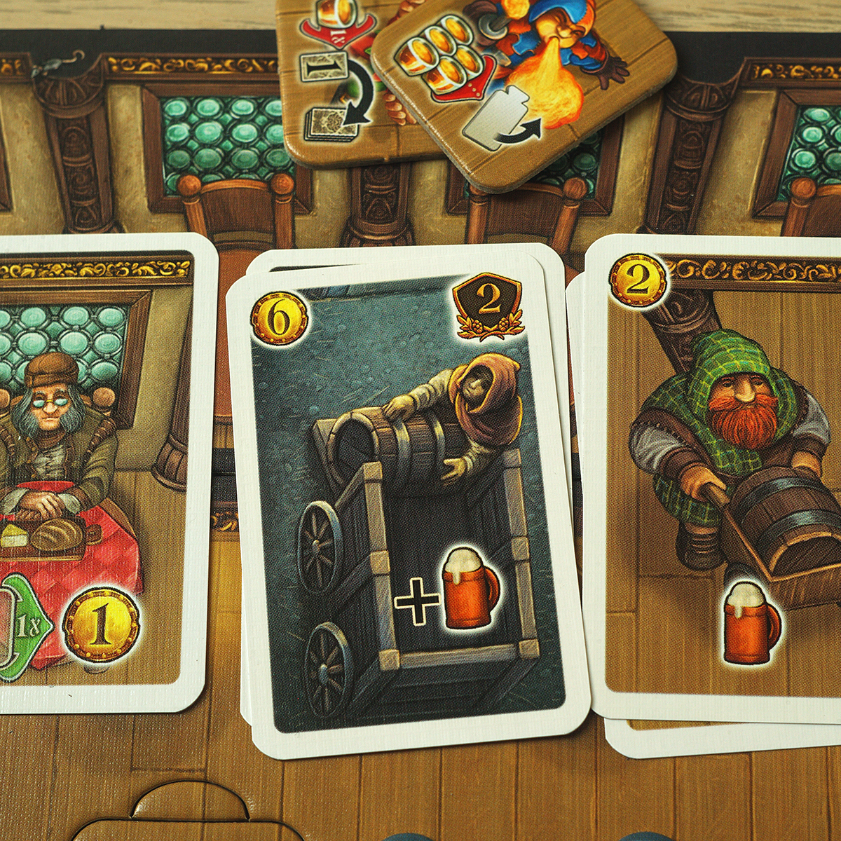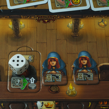 Правильно вибираючи кубики та будуючи власну колоду, ви принаджуєте заможніших гостей. Використовуйте їхні гроші для розширення своєї справи: збільшити кількість столів або розширити льох? Чи, може, варто найняти нових робітників? Вирішувати вам. Вдалі покращення приваблять вельмож, і тоді всім стане очевидно, чия таверна найкраща.
