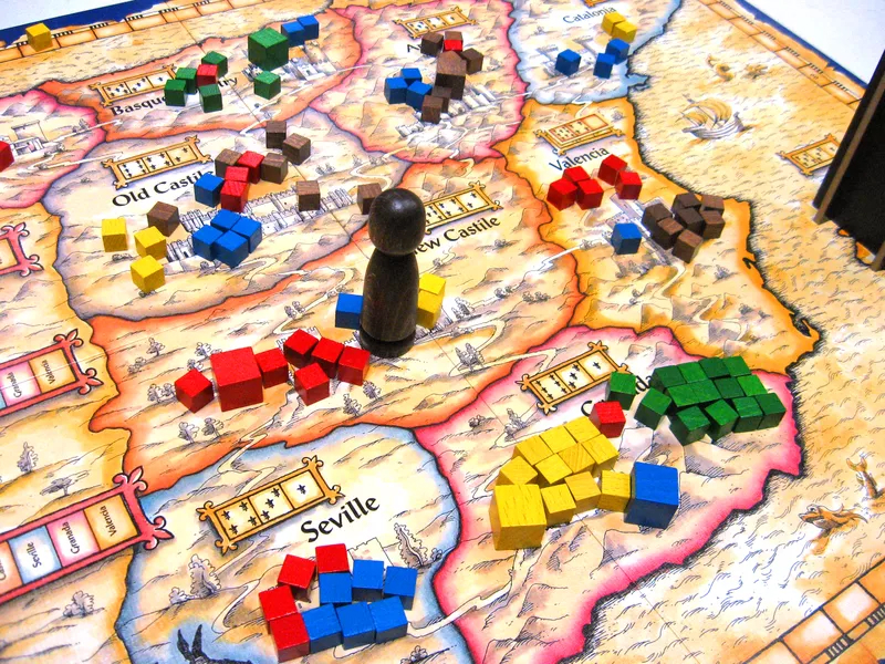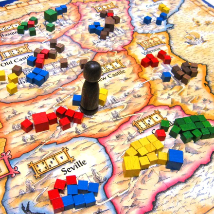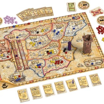 Підготовка: Розмістіть гральну дошку на столі. Це буде карта Іспанії, розділена на різні регіони. Розташуйте короля в одному з регіонів на дошці. Зробіть пул карт сили, з якого гравці будуть вибирати карти. Розподіліть гроші між гравцями.