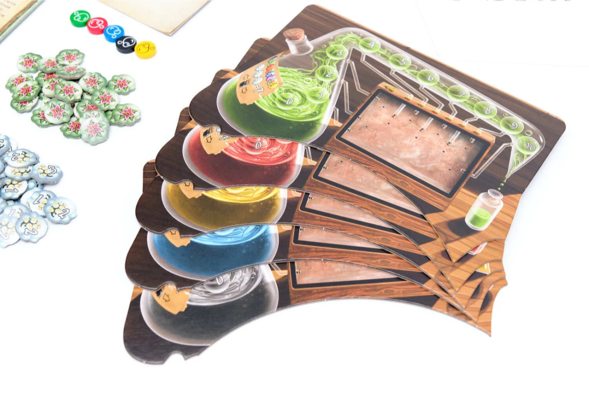 Вони використовують складне обладнання для перегонки есенцій, щоб полегшити страждання своїх пацієнтів. Дистиляція дає гравцям цінні бонуси та спеціальні дії, що надають додаткові переваги. Це розширення включає 20 нових карт ворожби та дві нові двосторонні книги інгредієнтів дурману.