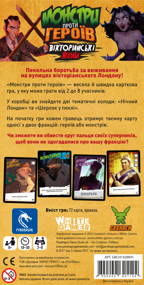 Колода «Нічний Лондон» містить класичних монстрів і літературних персонажів XIX століття: Дракулу, вовкулаку, Ван Гельсінґа, Арсена Люпена та інших. Колода «Шерлок у пеклі» містить героїв з історій про Шерлока Голмса, а також різних демонів і монстрів. Обидві колоди можна поєднувати з колодами з інших випусків. Зверніть увагу на випуск - "Монстри проти героїв. Міти Ктулху".