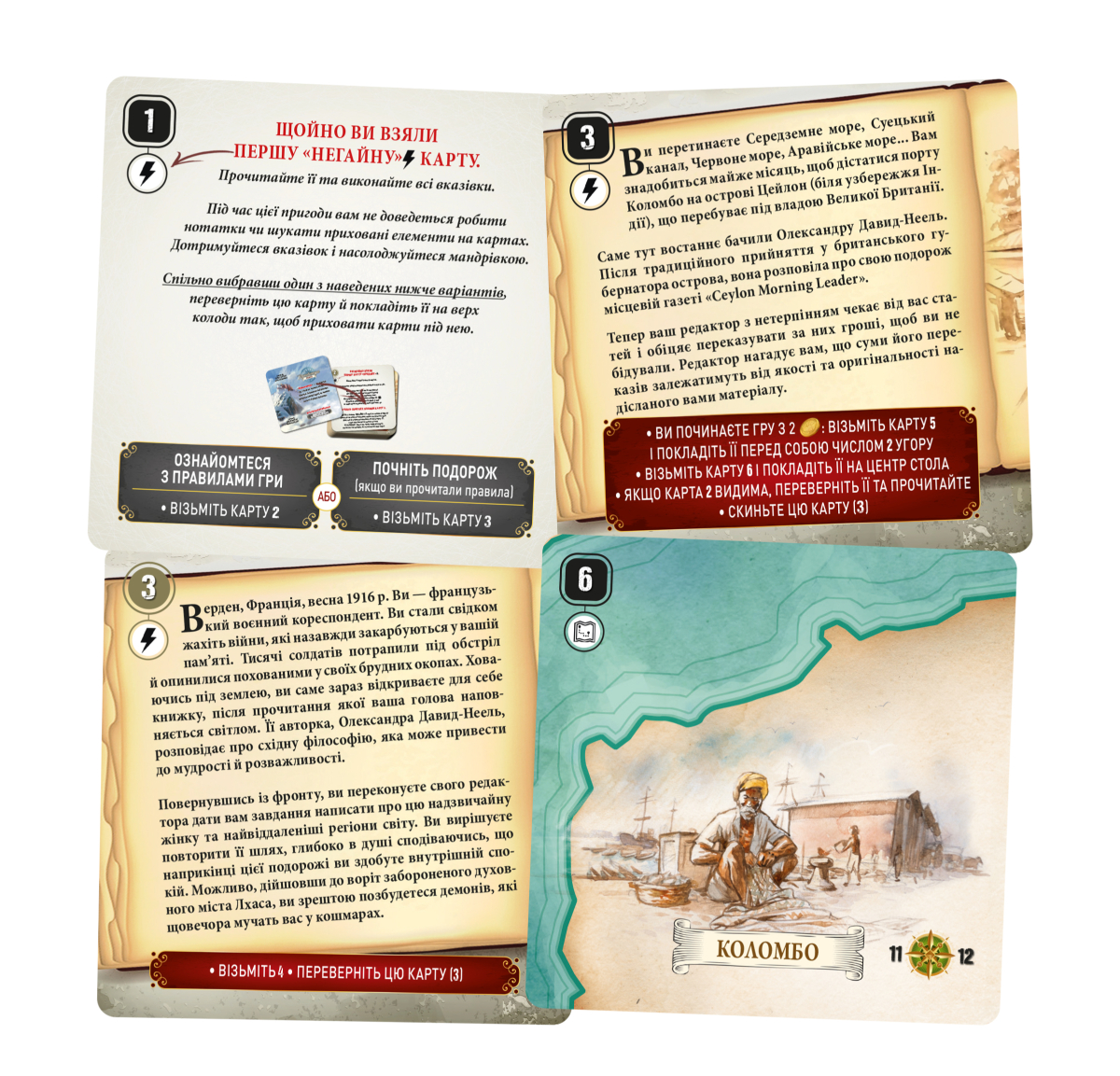 - Гра побудована на сюжетних картах, які гравці перевертають, щоб відкрити нові локації, завдання та елементи оповіді.