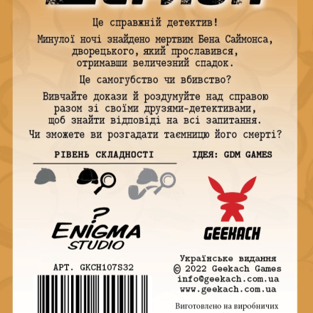 Вивчайте докази й роздумуйте над справою разом зі своїми друзями-детективами, щоб знайти відповіді на всі запитання. Чи зможете ви розгадати таємницю його смерті?