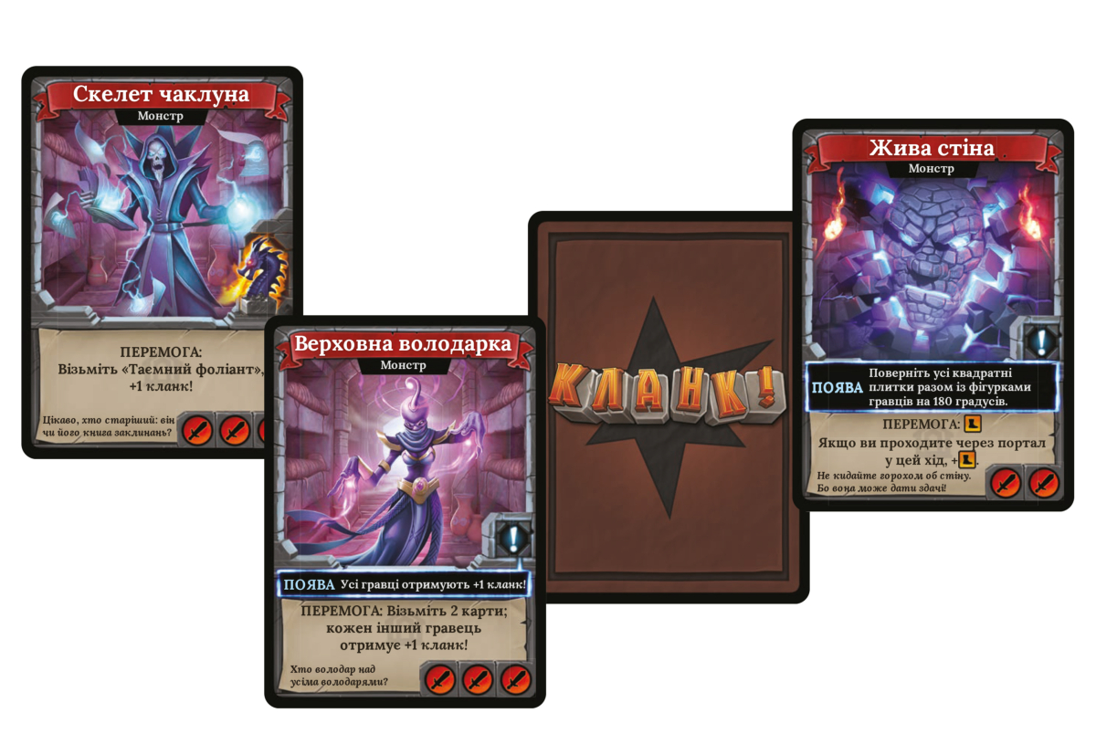 Нова версія захопливої колодобудівної пригодницької гри «Clank!: A Deck-Building Adventure». Настільна гра «Clank! Catacombs» вийшла в 2022 році. Вона отримала відмінні оцінки та відгуки на сайті «BoardGameGeek». Ця гра розроблена славнозвісним Полом Денненом, автором усієї серії «Кланк!», а також локалізованої Гікачем колодобудівної стратегії «Дюна: Імперіум».