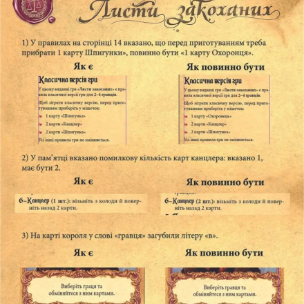 Властивості персонажів дозволяють захиститися від ворожих дій, піддивитися карту противника, помінятися з кимось картами, помірятися силою карт, змусити суперника взяти іншу карту або спробувати вгадати карту противника і в разі успіху вибити його з раунду. Принцеса Аннета - карта з найбільшим значенням, але, якщо гравець скине її, він відразу ж вибуває.