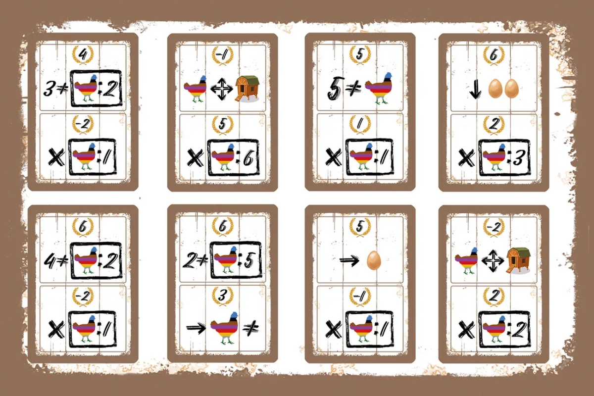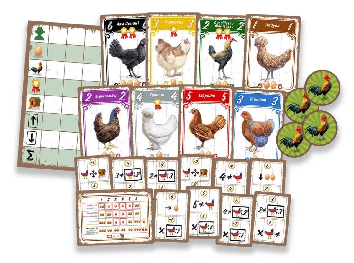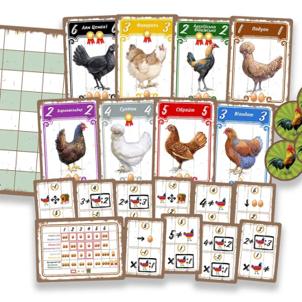 Курочки (Hens) – це сімейний філер з елементами збору сетів, в якому гравцям належить збирати колекцію із сімейств курочок різних видів.