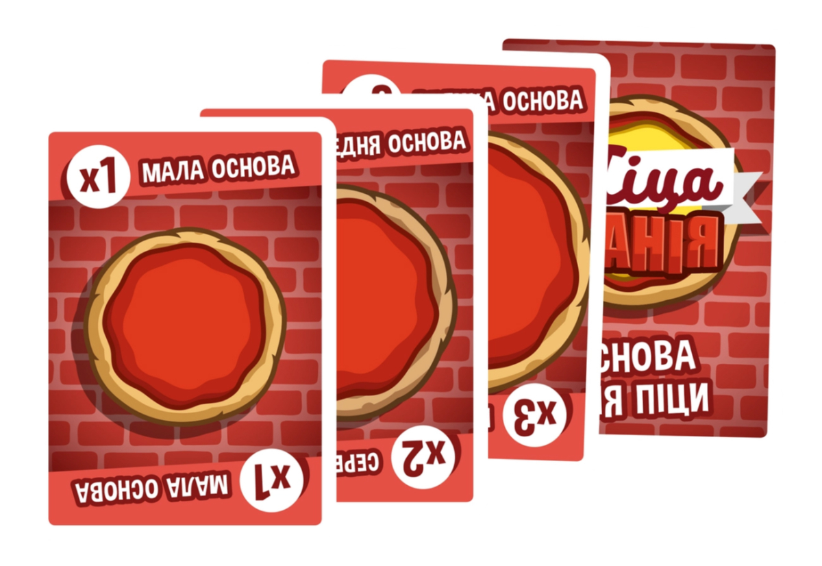 - У свій хід перший гравець відкриває карту основи для піци і розігрує на неї будь-яку карту начинки зі своєї руки.