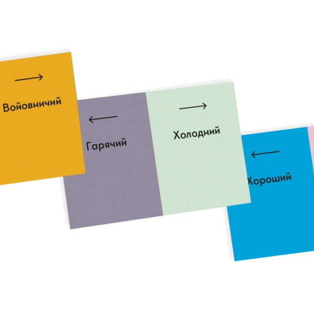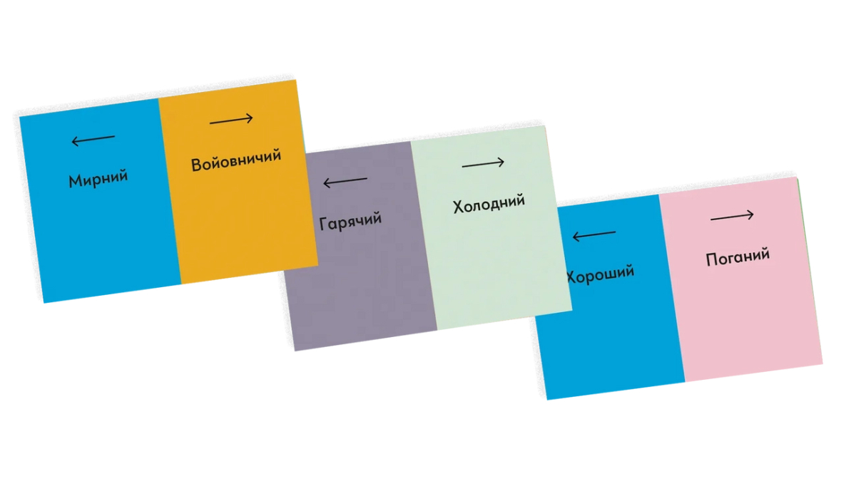 Наприклад, для картки «Вимагає удачі / Вимагає вміння» підказка «Монополія» натякає на стрілку десь на початку шкали, а «шахи» - аж у кінці.