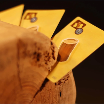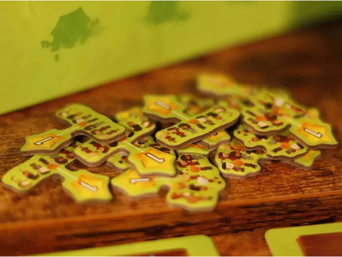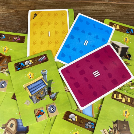 - Активація будівель. Якщо у вас є ресурси, які зображено ліворуч на дерев'яній табличці з карти будівлі, ви можете скинути такі карти, щоб отримати ресурси, які зображено праворуч на тій же табличці після стрілки. Наприклад, ви можете скинути карту вудочки, щоб активувати ставок та отримати карту рибини, а потім скинути карту рибини, щоб активувати рибалку й отримати жетон ПО. Активувати будь-яку карту будівлі можна тільки один раз за хід.