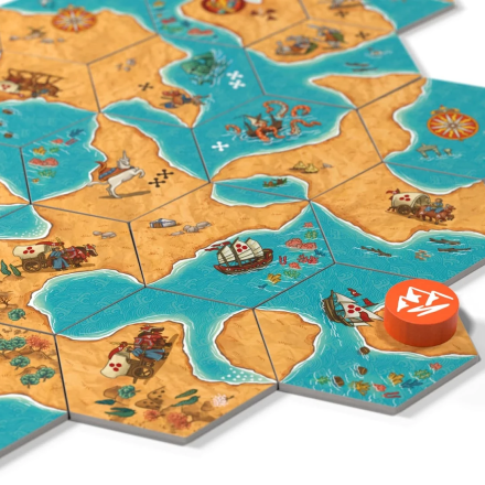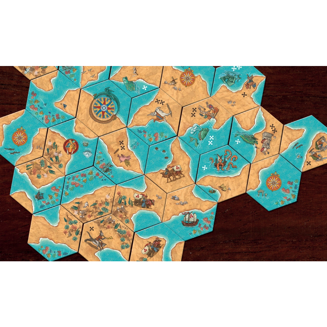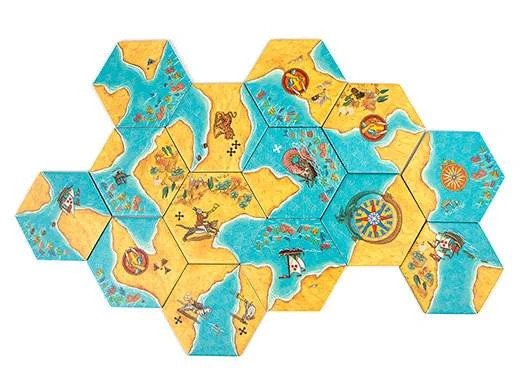 - Покладіть до вже викладених ділянок шестикутник зі свого запасу, так щоб він поєднувався з іншими морем до моря, сушею до суші.