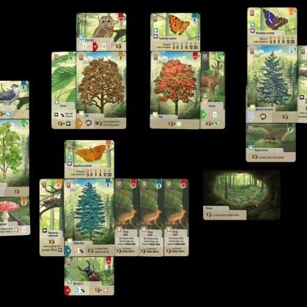 - Карти поділяються на два типи: дерева та лісові мешканці. Розігруючи карти перед собою, гравці утворюють ліс, основою якого є дерева. Зліва, справа, зверху та знизу карти дерева є чотири комірки для заселення. Карти лісових мешканців завжди містять два види, гравець сам обирає який із них хоче зіграти та розмістити поруч з деревом.