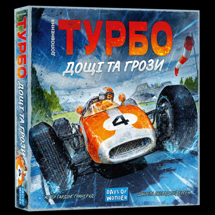 Доповнення «Дощі та грози» додає до гри «Турбо: Спека на треку» серед іншого нові поліпшення, два нових треки та компоненти для сьомого гравця. Карти стресу, турбо, спонсорів, поліпшень та подій замішуються до відповідних базових колод.