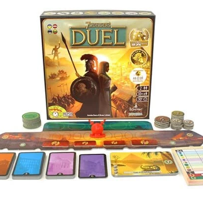Дуельна версія знаменитих «7 чудес», карткового бестселера про розвиток цивілізацій і будівництво чудес світу. Настільна гра «7 Wonders Duel» була розроблена в 2015 році геніальним Антуаном Боза (власне, «7 чудес», «Такеноко», «Токайдо») і прославленим Бруно Каталою («Кіклади», «Хістріо», «Kingdomino», «Нагараджа», «Канагава», «Окійя»).