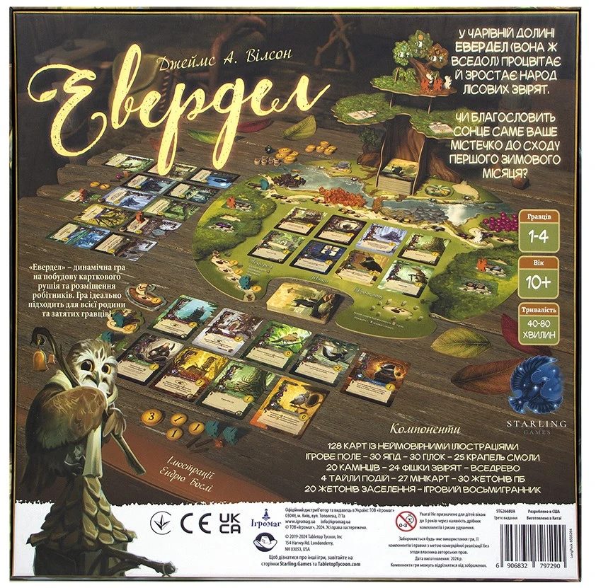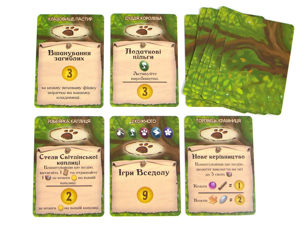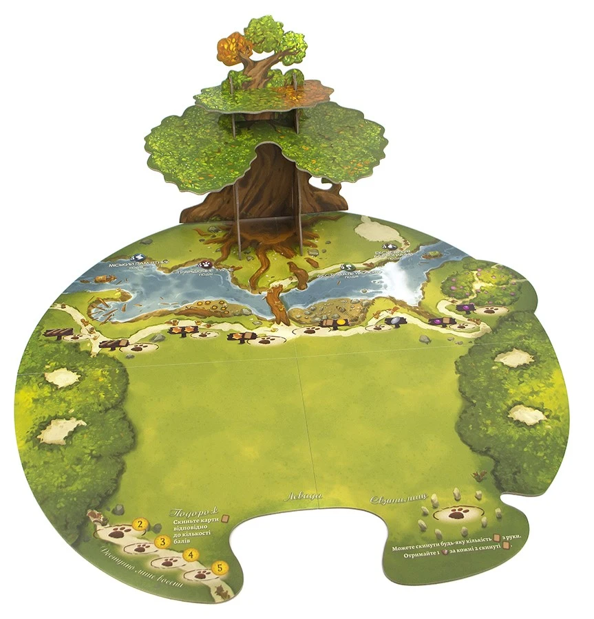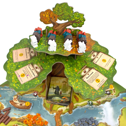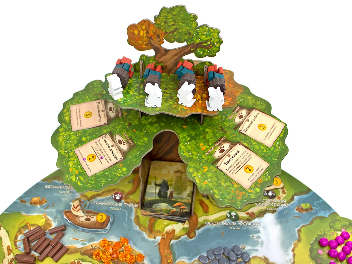 Неймовірно красиве євро про будівництво звірячої цивілізації під покровом Могутнього Вседрева. Це захоплива динамічна гра на будування карткового рушія та розміщення робітників зі зворушливими ілюстраціями та чудовими компонентами – звірятами-міплами, реалістичними ресурсами та величезним тривимірним деревом.