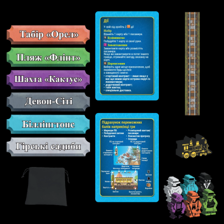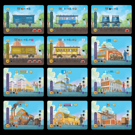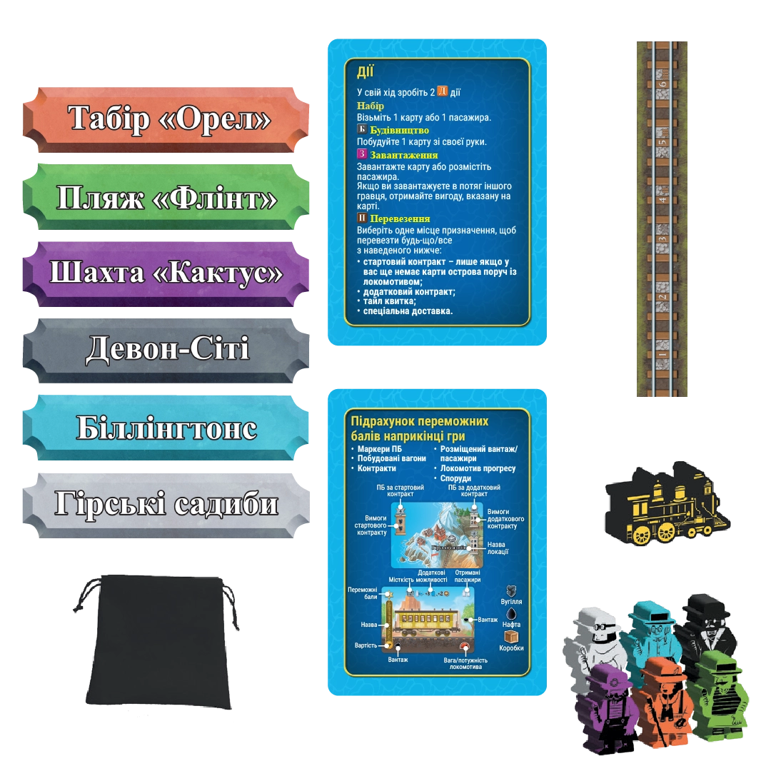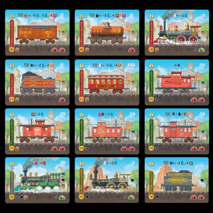Пасажири дістаються випадковим чином з мішка. Гравці можуть розмістити їх у доступні вагони та спробувати доставити до місця призначення для отримання бонусів.