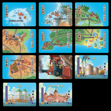 Мрієте стати конструктором локомотивів, та ще й на затишному острові? З грою «Острів залізниць» у вас є можливість будувати потяги, завантажувати товари, укладати острівні контракти та перевозити пасажирів. «All Aboard» — це значно покращена та розширена версія карткової гри 2014 року.