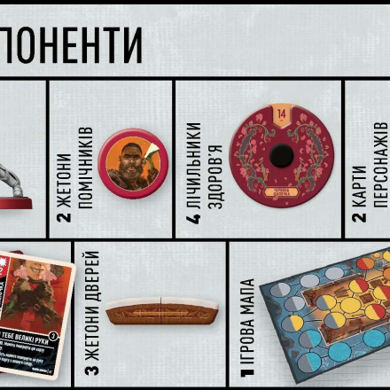 - Двері.Двері перешкоджають переміщенню між локаціями. Щоб відкрити двері герою, доведеться витратити 1 очко переміщення. А закривати їх за собою можна безкоштовно.