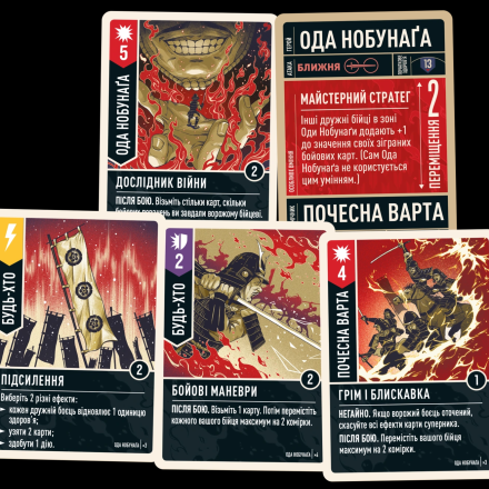 Усі дружні бійці у зоні Оди Нобунаґи отримують +1 до своїх карток бою.