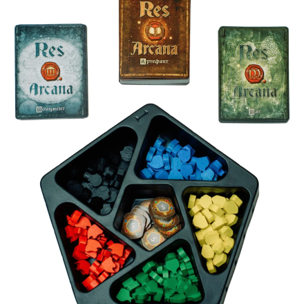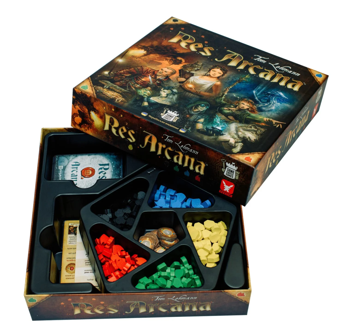 «Res Arcana» – це чудова гра для 2-4 гравців з основної механікою побудови ефективних комбінацій заробітку переможних балів. Звучить трохи заплутано, та на ділі все дуже просто і захоплююче.