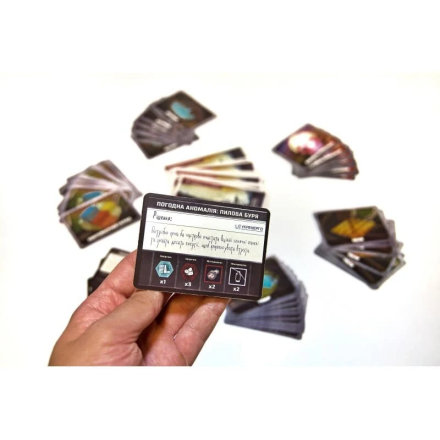 - Дрезина - треба кинути кубик Дрезини та застосувати ефект випалої грані. Гравець може втратити спорядження або інструмент, пропустити наступний хід, отримати додатковий хід + інструменти, запчастини або жетони енергії. Витративши жетон енергії, можна перекинути кістку. Використані жетони запчастин дають +1 до результату.