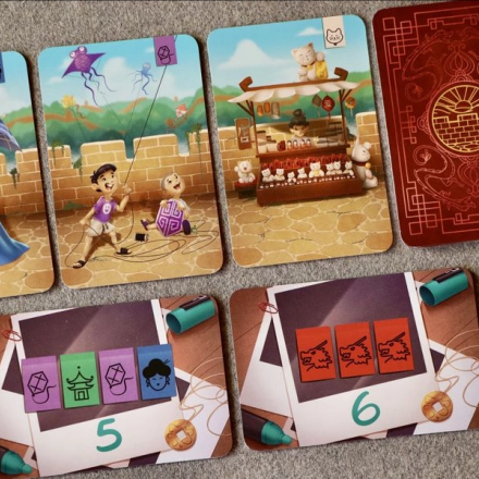- Вибір карти муру: виберіть одну з відкритих карт муру з ринку і розташуйте її ліворуч або праворуч від Великого муру. Якщо ви не хочете брати жодну з відкритих карт, ви можете взяти верхню карту колоди, яка лежить долілиць. Потім дозаповніть ринок відкритими картами до трьох.