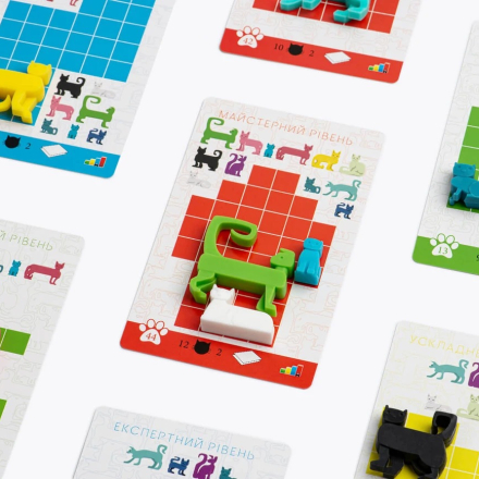 Деякі завдання потребують складання котів у декілька шарів. Це також зазначено на картці. Але потрібно їх вкладати таким чином, щоб жоден кіт не був вищим за інших, наприклад, вушками, хвостом чи іншою частиною тіла.