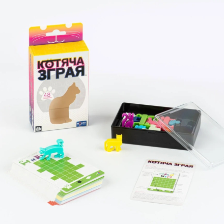 Котяча зграя (Cat Stax) — сімейна головоломка для поціновувачів затишних вечорів. Не важливо, гратимете ви самостійно чи влаштуєте змагання в компанії, адже ця гра допоможе розслабитися та весело провести час. В наборі 44 картки з завданнями, чотири рівні складності та 12 фігурок котів. Все це розміщено у пластиковому дорожньому кейсі, який легко взяти з собою, ба навіть у подорож.