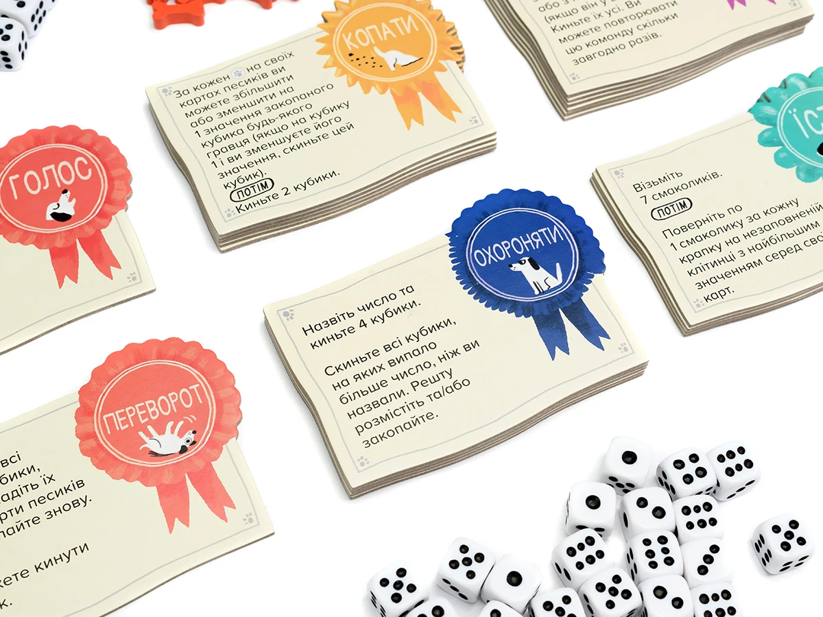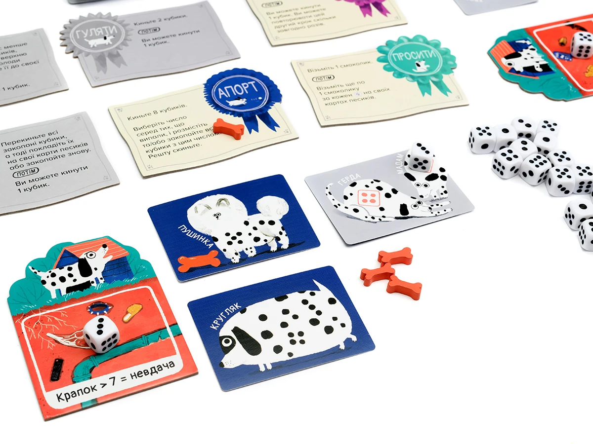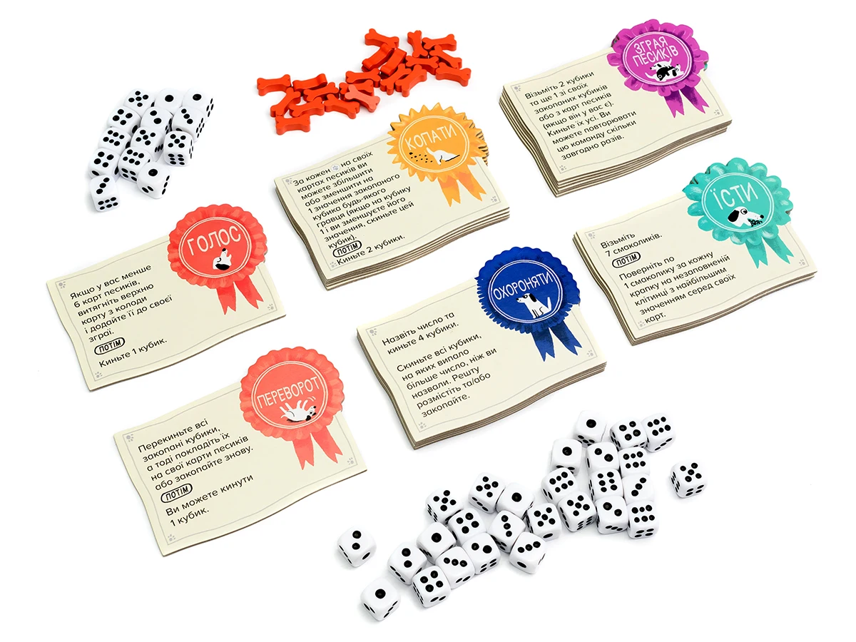 Щоб мати можливість перекидати кубики, запасайтесь кісточками-смаколиками! У разі, якщо наприкінці дії Виконання команди, всі ваші песики заповнені кубиками, одразу виконайте дію Завершення, не витрачаючи на це додатковий раунд.