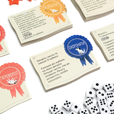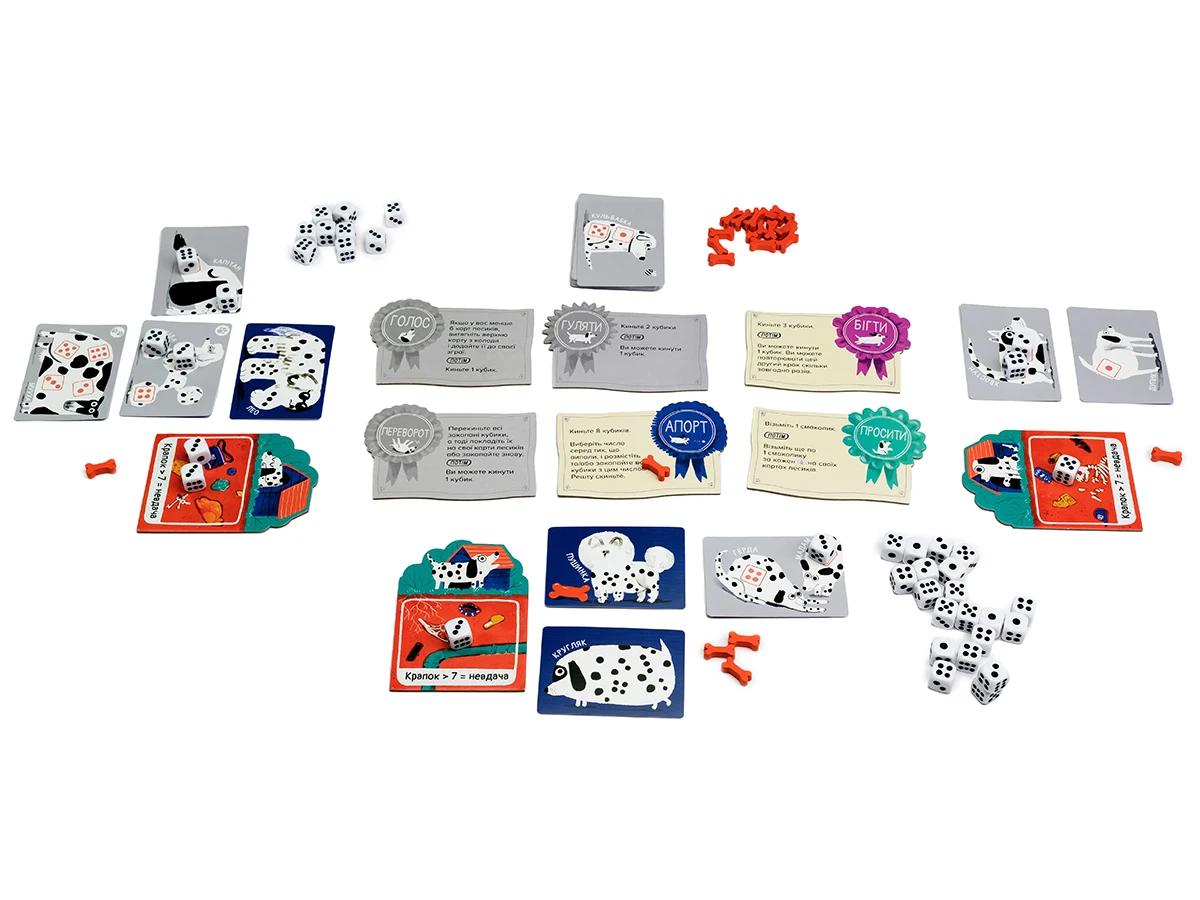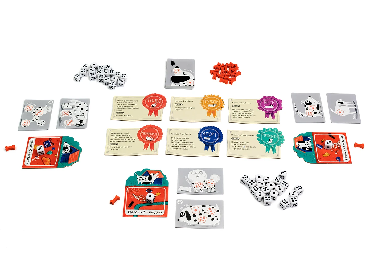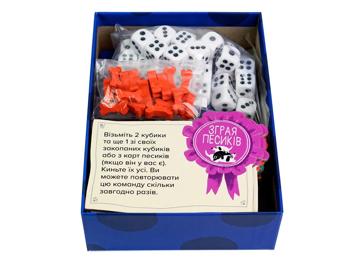 Щоб мати можливість перекидати кубики, запасайтесь кісточками-смаколиками! У разі, якщо наприкінці дії Виконання команди, всі ваші песики заповнені кубиками, одразу виконайте дію Завершення, не витрачаючи на це додатковий раунд.
