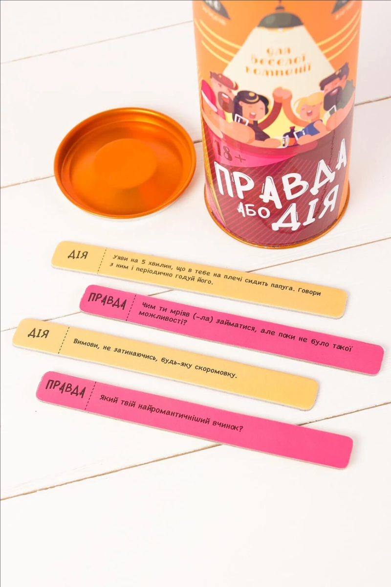 Можете більше не думати, оскільки настільна гра «Правда чи Діло: Для веселої компанії» - найкраще рішення для даного випадку.