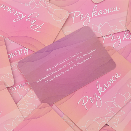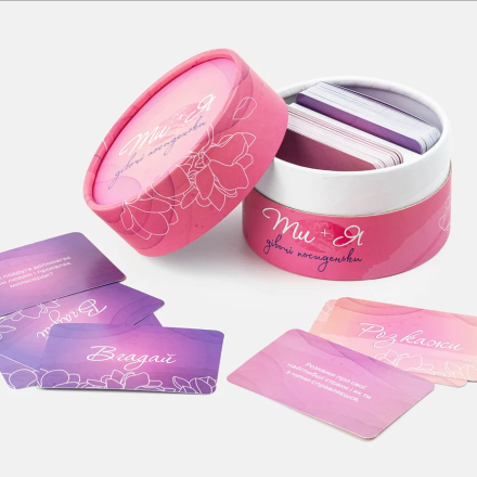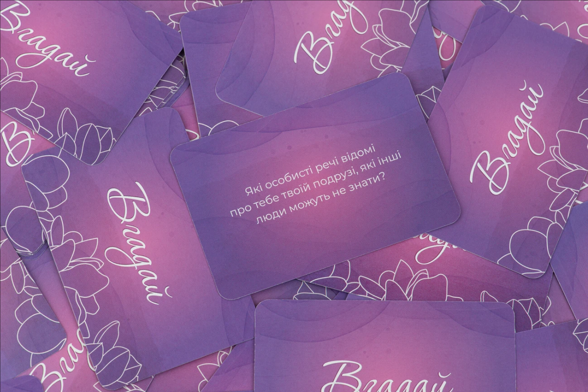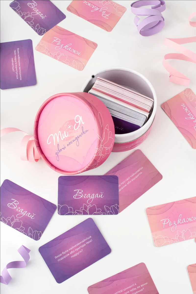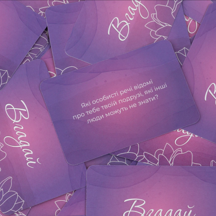 Розкажіть про свої найглибші страхи і як ви з ними справляєтесь. Пригадайте речі, які відомі про вашу подругу лише вам, і нікому іншому. Вгадайте, яким мобільним застосунком ваша подруга користується найчастіше? В наборі 120 несподіваних питань.