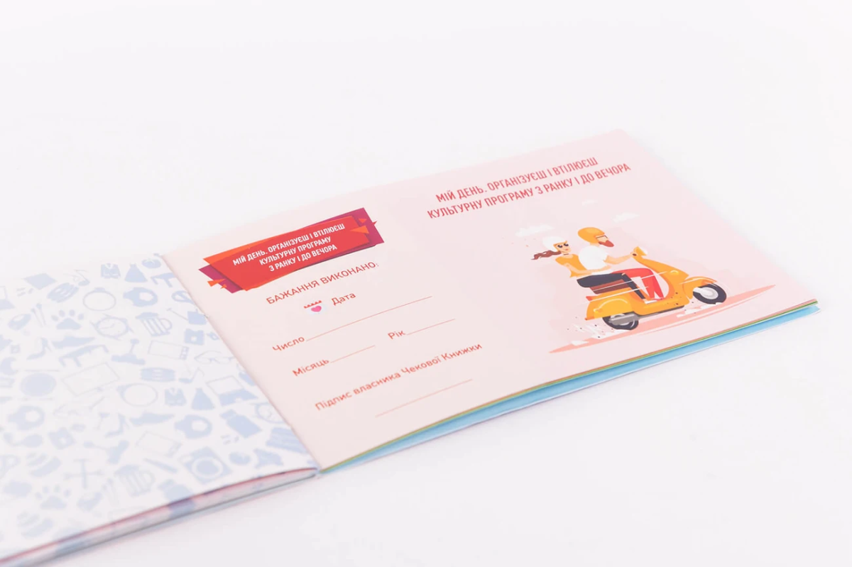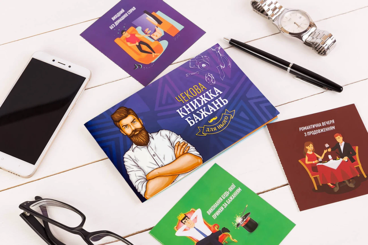«Чекова книжка бажань: для нього» - романтична книжечка для коханого. Станьте джином для свого любого Алі-Баби, зробіть його щасливим. На думку Гікача, ця книжка буде ідеальним подарунком хлопцю від його дами серця на День народження, День закоханих або річницю весілля/відносин.