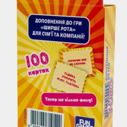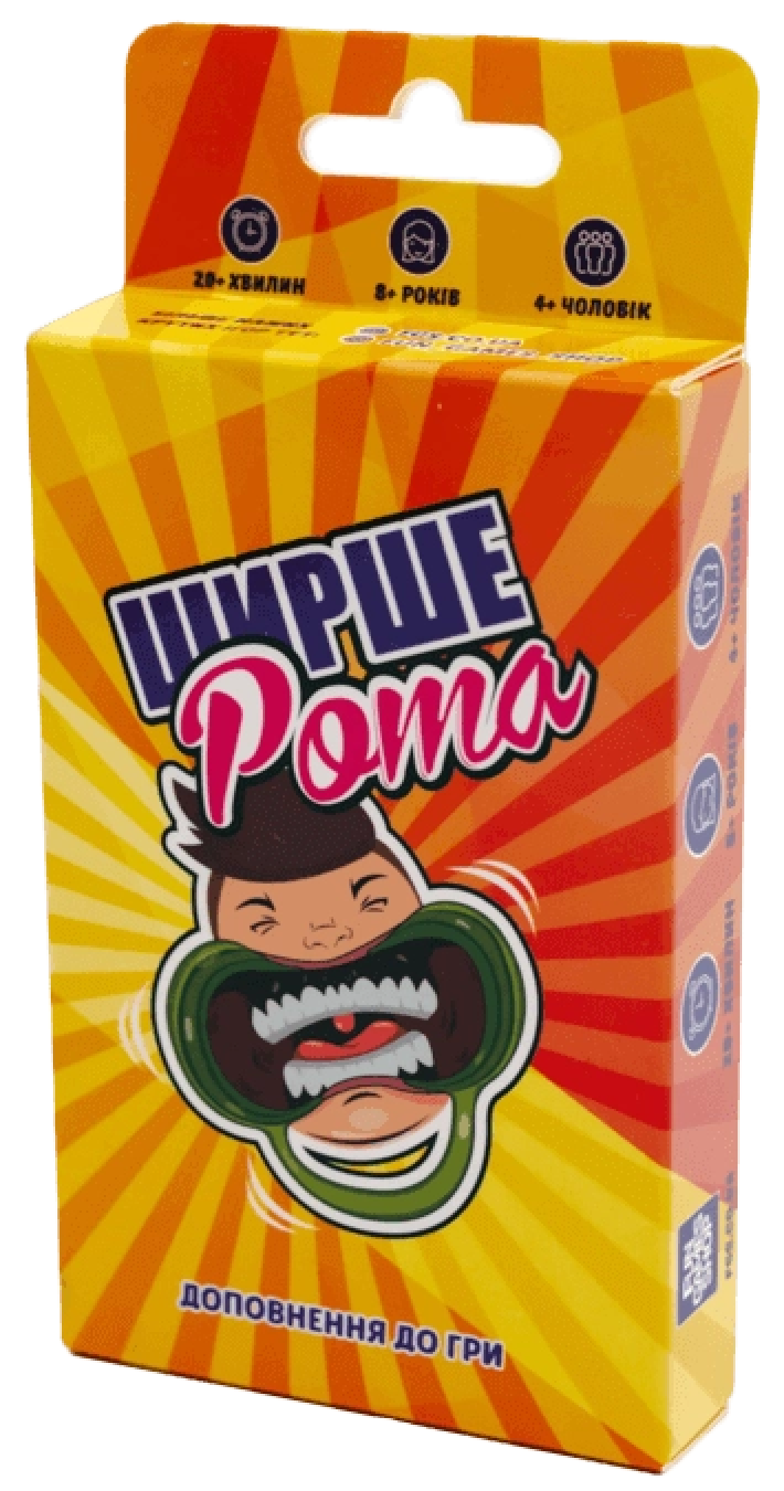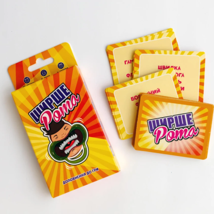 «Ширше рота!» - доповнення для настільної гри «Ширшерота». Гікач гарантує, що з цим доповненням гра буде ще реготливішою.