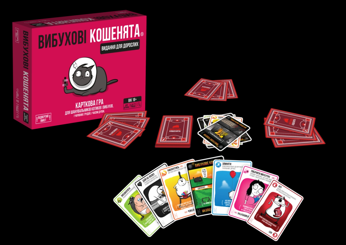 Настільна гра «Вибухові кошенята» (Exploding Kittens) розроблена іменитими дизайнерами «Marvel» і «Xbox». Гра ґрунтується на принципі «російської рулетки»: учасники по черзі тягнуть карти з колоди. Хто витягне Вибухового Кошеня - тому не пощастило, якщо тільки у нього нема карти, здатної знешкодити вибух.