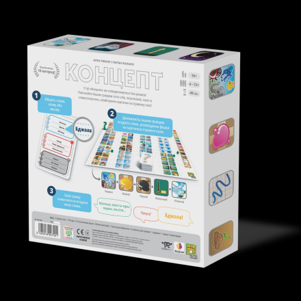 Настільна гра «Концепт» чимось нагадує ігри "так/ні", в яких гравці ставлять ведучому запитання щодо загаданого слова, на які він може відповісти тільки "так" або "ні". Ці запитання стосуються послідовно чогось загального ("чи воно живе?"), потім - особливого ("воно живе у воді?"), та детального ("воно зелене?"). Ці запитання і є концептами, на які гравці розбиватимуть слово. А втім, у настільній грі «Concept» слово на складові розбиватиме ведучий завдяки розміщенню на полі маркерів поруч із зображеннями ключових для пояснення слова понять!