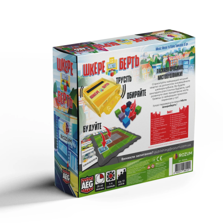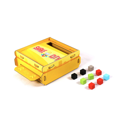 «Shake That City» – проста та яскрава сімейна гра з коробкою-шейкером для кубиків. А переможе в ній найкращий містобудівник! Гікач вже потренувався у проєктуванні «Крихітних містечок», розбудував «Моє місто», заселив «Маленьке містечко», та намалював «Містечко мрій», і знову готовий до великого будівництва.