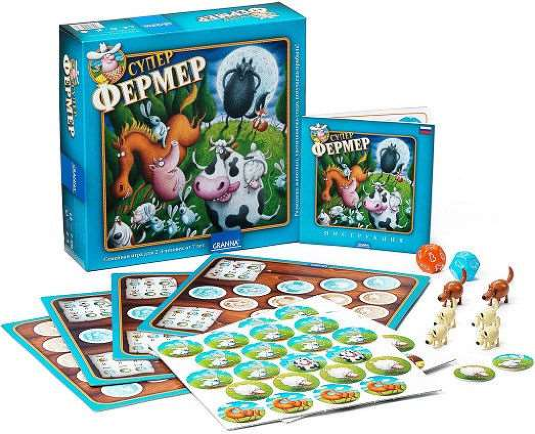 В настільній грі “Супер Фермер” учасники виступають в ролі фермерів, кожен з яких розвиває невелике присадибне господарство. Починаючи з одного кролика, ви поступово збільшуєте поголів'я рогатого, копитного, мукаючого, мекаючого і хрюкаючого скота. Для цього гравці кидають спеціальні кубики, за допомогою яких визначається, які тварини будуть розмножуватися в поточний день. Потім, по спеціальному курсу, гравці можуть обмінювати тварин. При цьому не варто забувати про те, що на кубиках можуть випасти вовк і лисиця для захисту від яких необхідно обзавестися собаками. Все, що вам знадобиться для підготовки до гри, це дістати її з коробки і роздати кожному гравцю по персональному ігровому полю-загону. Утилітарні ігрові поля зображають тварин і обмінний курс. Проте для гри наявність загонів не обов'язкова, і, відправляючись в дорогу, ви можете захопити гру без них. Для зручності ви також можете відсортувати жетони тварин по типу. Тепер все готово до гри.
