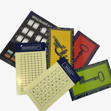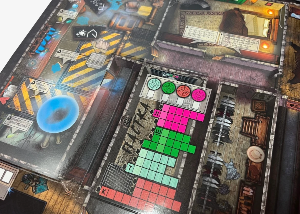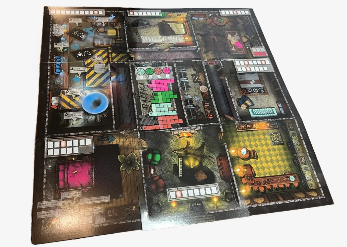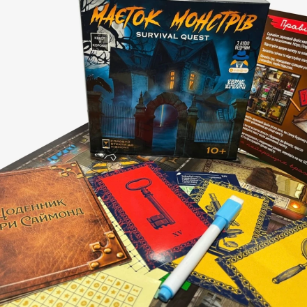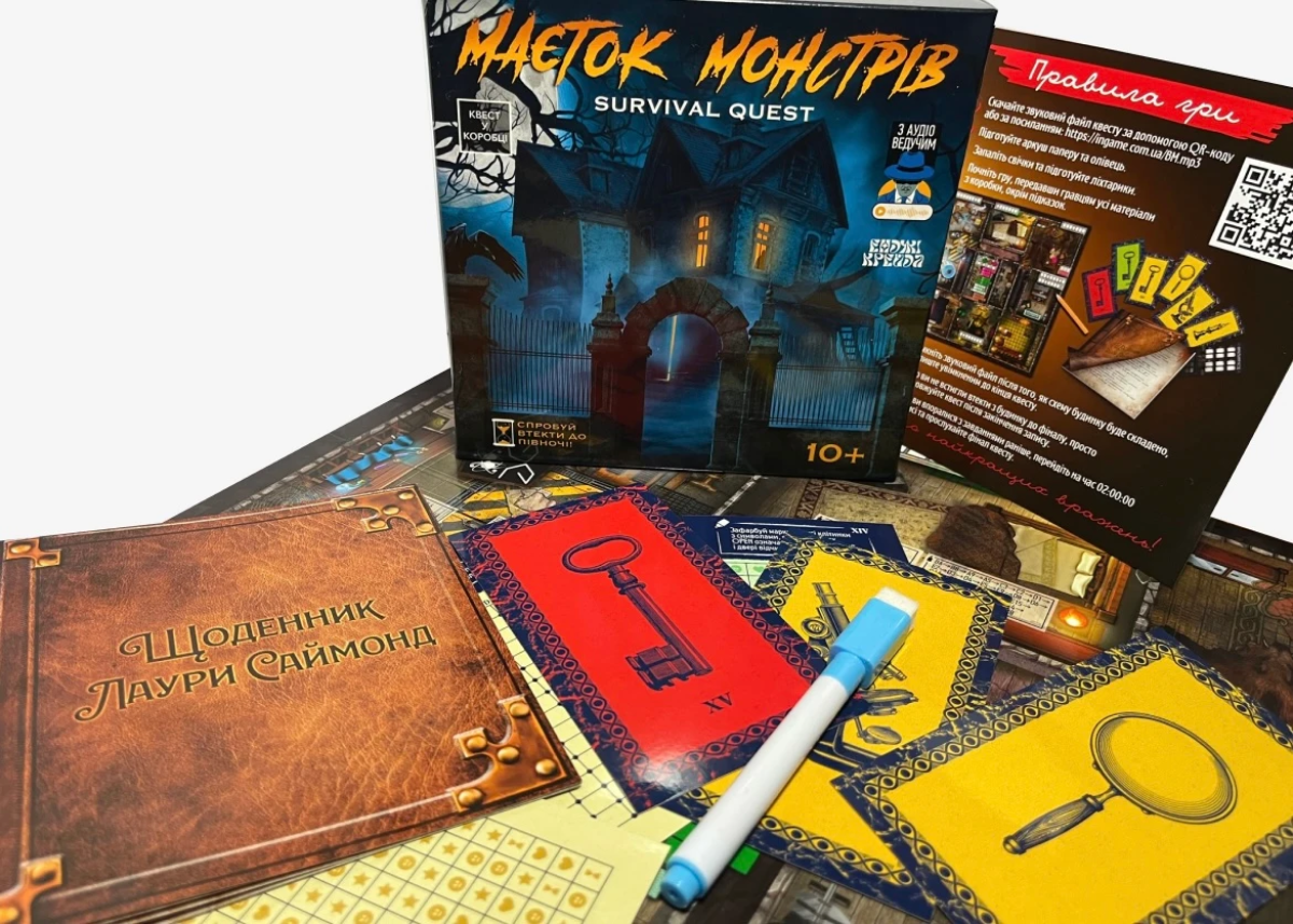 В комплекті не лише схема маєтку, а і надзвичайно важливий щоденник дружини власника Лаури, спеціальні картки та маркер, що стирається. Карти з підказками за потреби допоможуть вашій команді ВИЖИТИ.
