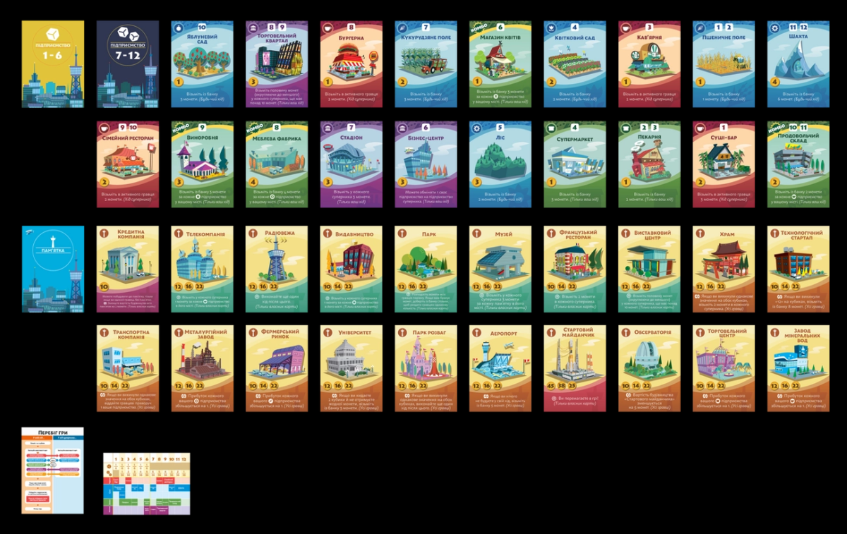 - Фаза будівництва. У фазу будівництва активний гравець будує одне підприємство або одну визначну пам'ятку. Для побудови потрібно заплатити вказану на карті вартість в монетах. Підприємства згодом приноситимуть вам дохід, деякі з них спрацьовуватимуть лише у ваш хід або лише в хід суперника. Карти пам'яток можуть містити як миттєві, так і постійні ефекти.