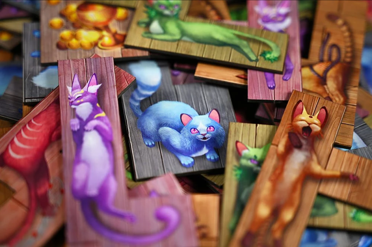 - родиною котів вважають щонайменше три одноколірних тайли, що ортогонально прилягають один до одного. Гравці отримують очки за врятовані котячі родини: за 3 родини дається 8 очок,