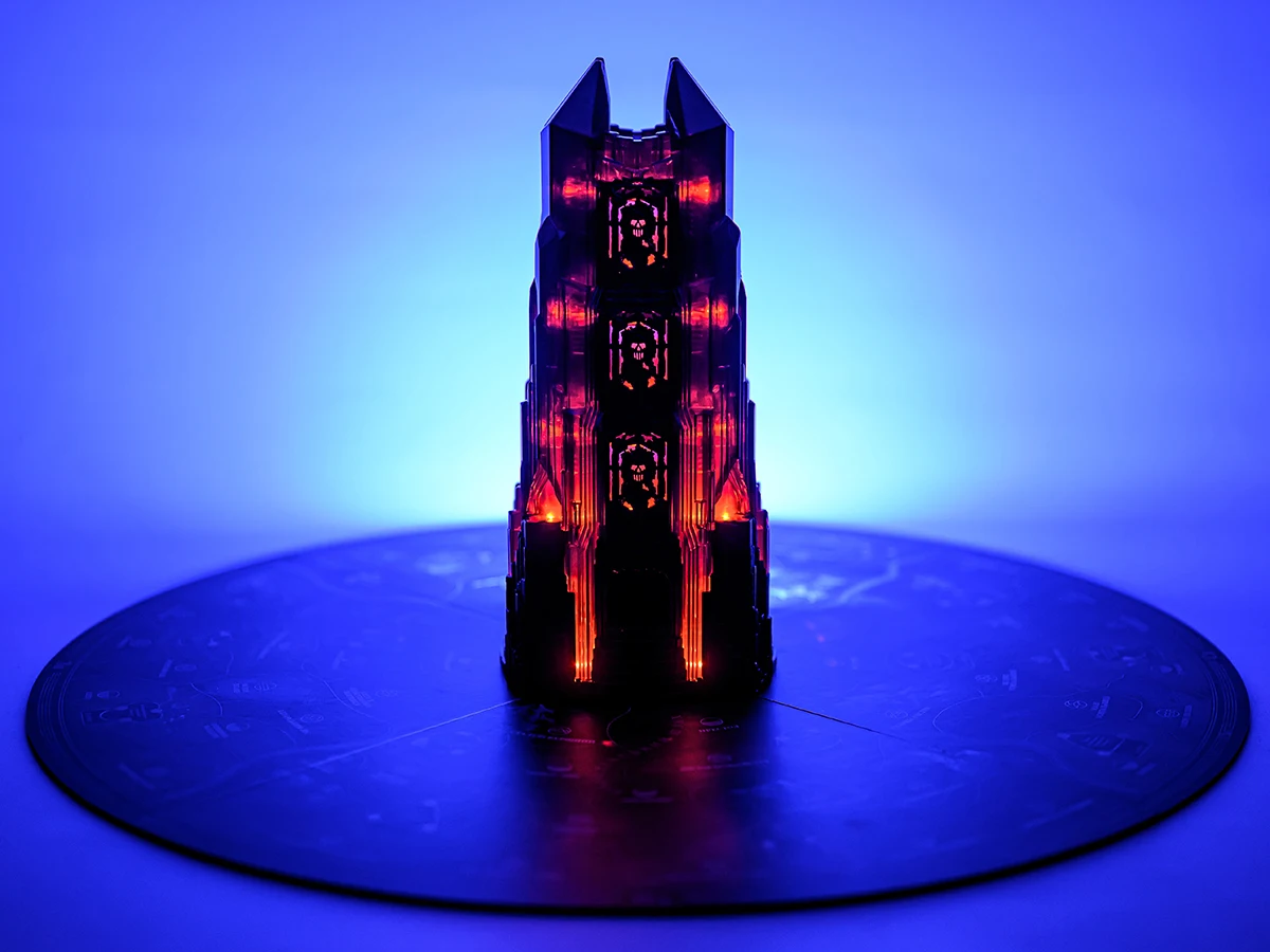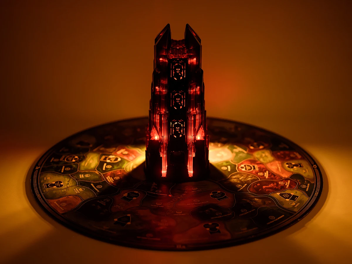 Магічна вежа з підсвіткою, попри застосунок, не втратила свій інтерактивний ефект. Наприкінці свого ходу гравець завжди кидає череп всередину вежі, а при натисканні кнопки в застосунку активуються її «прокляття»: відкриваються комірки з печатками та випадають нові черепи.